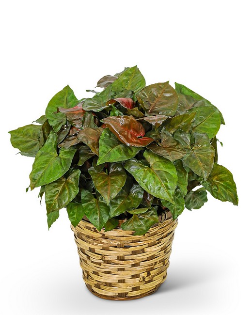 Our Arrowhead Plant in a Basket is a stunning plant that features lush green leaves with a unique arrowhead shape. The Arrowhead plant is a low-maintenance plant that can thrive in a variety of light conditions, from bright, indirect light to lower light levels. It also requires minimal watering, making it the perfect choice for anyone looking for a beautiful plant without the hassle of constant care. Whether you're celebrating a birthday, sending a get-well gift, or just want to show someone how much you care, our Arrowhead Plant in a Basket is a perfect choice.